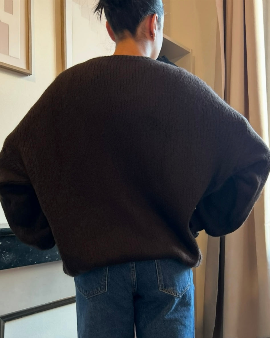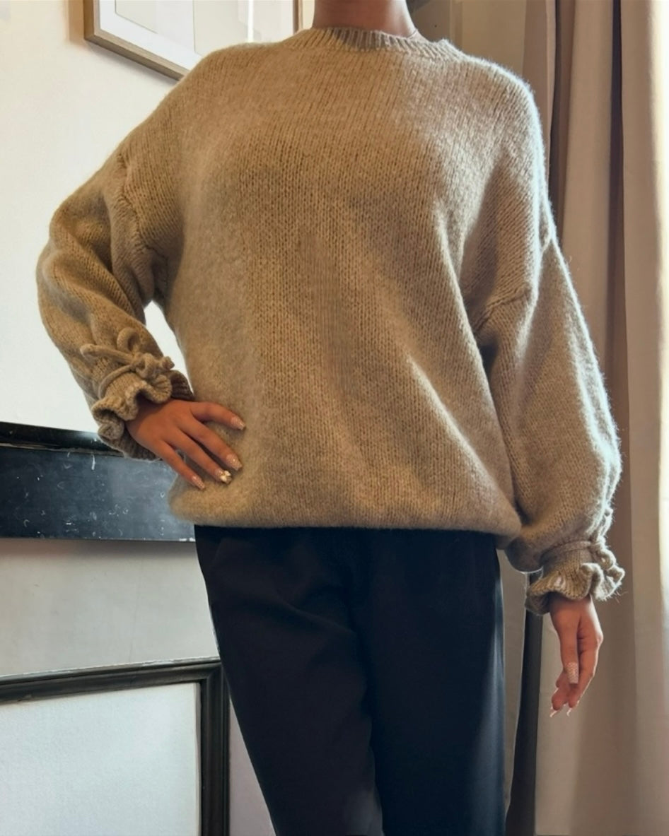 Le pull Romy réinvente la douceur de saison avec une touche de féminité et d’originalité.